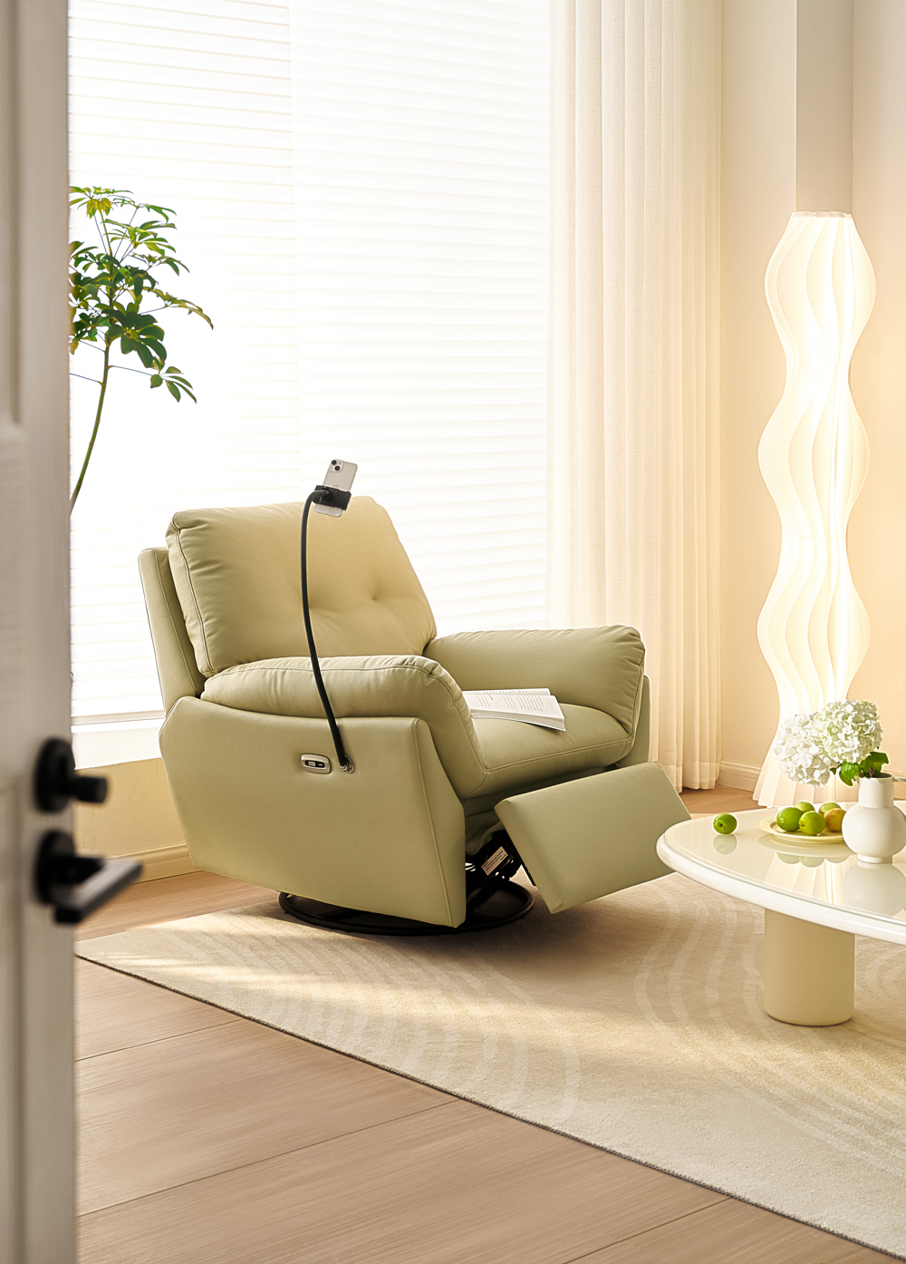 “小胖墩”多功能沙发,前后左右可随心摇摆、旋转,躺、摇、转三合一,惬意且自在;电动款还配置了USB充电接口和可旋转手机支架,解放双手沉浸式追剧。