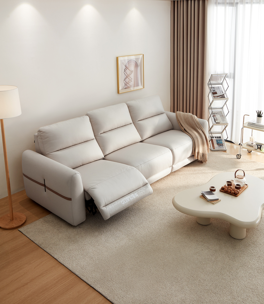 “奶油太妃”电动功能沙发,设置电动大角度功能位,十区科学承托,可以均衡释放身心压力;一字造型,专为中小户型设计的妃位,根据需求打开合起,方便又舒适;沙发侧面还配置了USB充电口,畅玩游戏不断电。