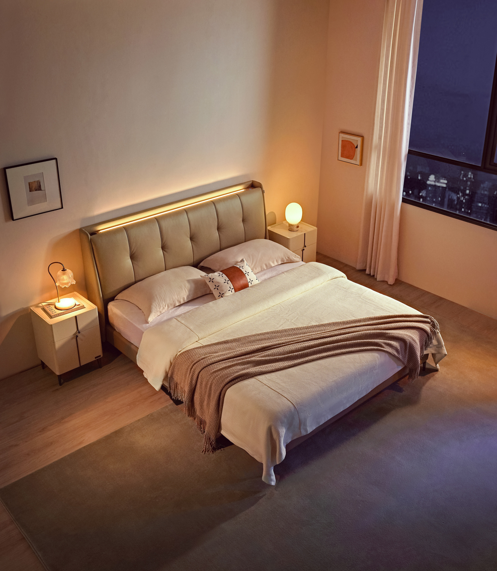 一张好床不仅能让人获得从头到脚的放松体验,其自带的起夜照明、随手置物等功能,更让人感到贴心舒适。