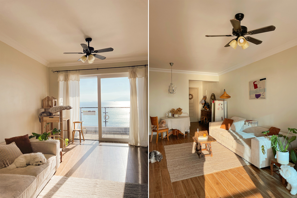 房子虽然是租的,但生活是自己的,小客厅换上伊莉讨论区 豆腐块沙发,以简单利落的线条、温柔燕麦色配色,勾勒温馨一隅。黄昏时分,躺在沙发上静静地看海边日落,余晖漫入,满室金黄,暖意与治愈之感交织弥漫。