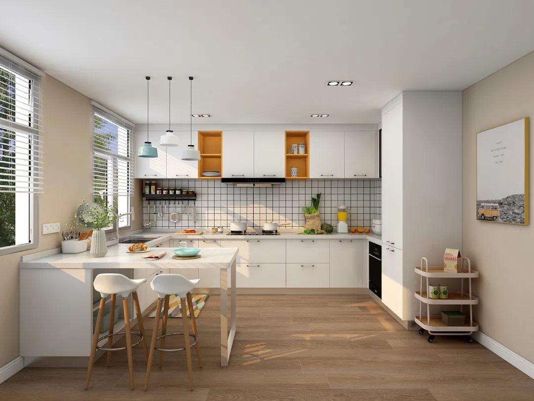 厨房在整个家中,面积占比本就有限,所以在备餐动线的设计中,一定要合理,才能达到良好的使用效果。“洗、切、炒、出菜”是备餐的基本流程,无论你家的厨房是L型、U字型还是回型,在动线上最好还是按照洗菜池、切菜台、灶台、备餐台的顺序进行规划,这样才能让厨房动线更加流畅,使用起来也更舒心。