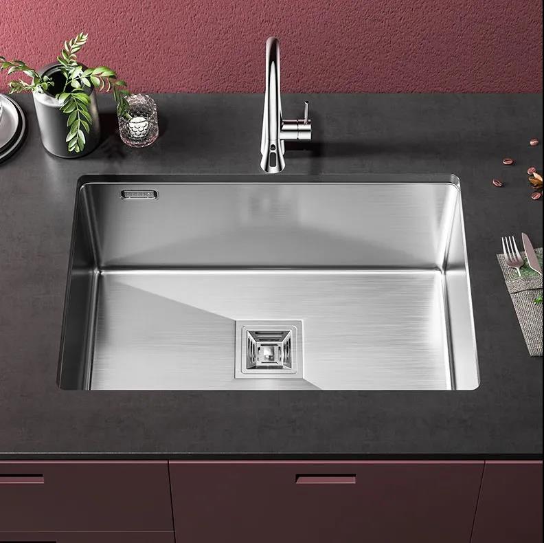 安装台下盆的好处是,轻松一抹就能将台面污渍扫入水槽并且冲洗干净,打理起来更轻松容易,并且整体效果好,但是台下盆的承重力不如台上盆,因此要在水盆和台面之间做好粘结和定位处理。