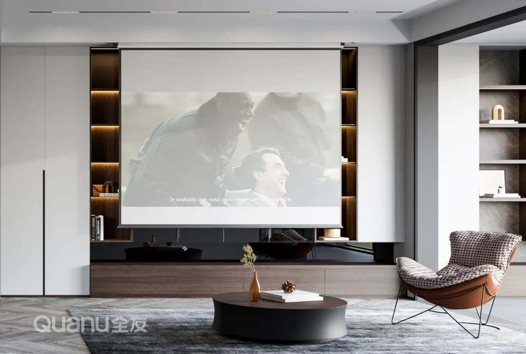 那既想要充足的收纳空间,又有看电影的需求怎么办呢?一个投影仪就可以搞定,投影幕布不仅画面比电视大,也没有传统电视的沉重感,使用更加灵活。